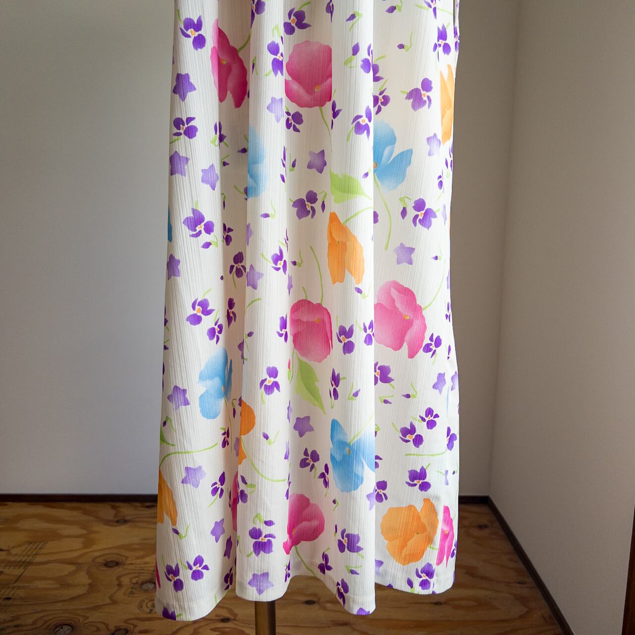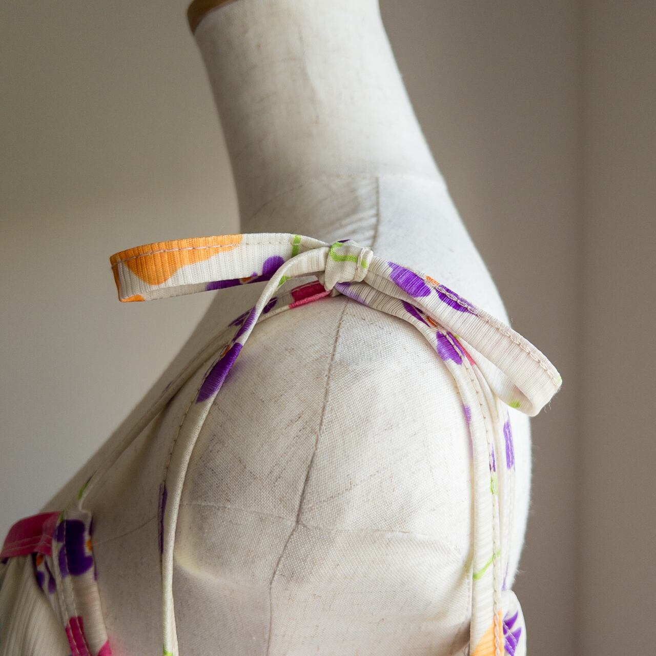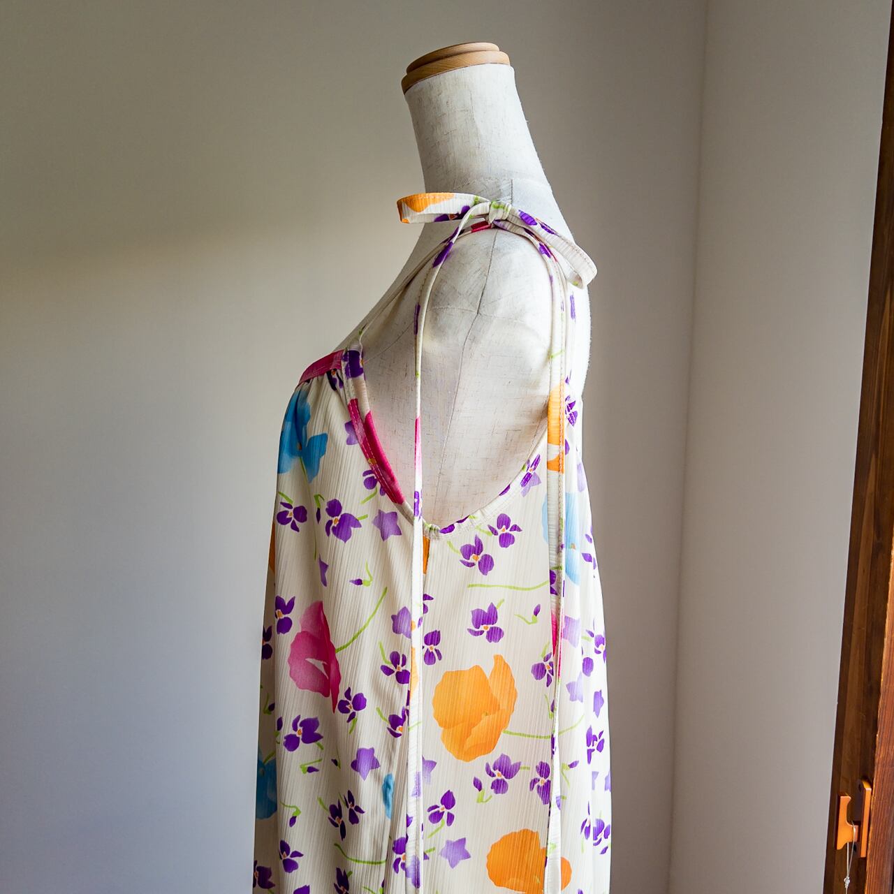 このワンピースはおそらくハンドメイドだと思います。ポピーが描かれているテキスタイルを使っているので、イギリスの人が作ったのかも。