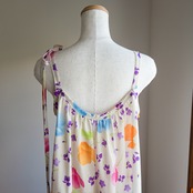 こちらワンピースのかわいいポイントは、お花柄の他に何と言っても肩ひものリボン。