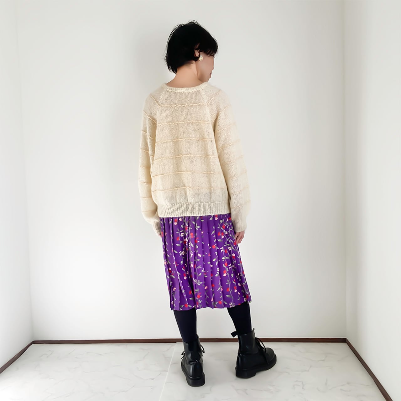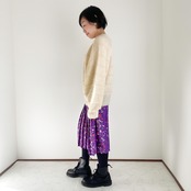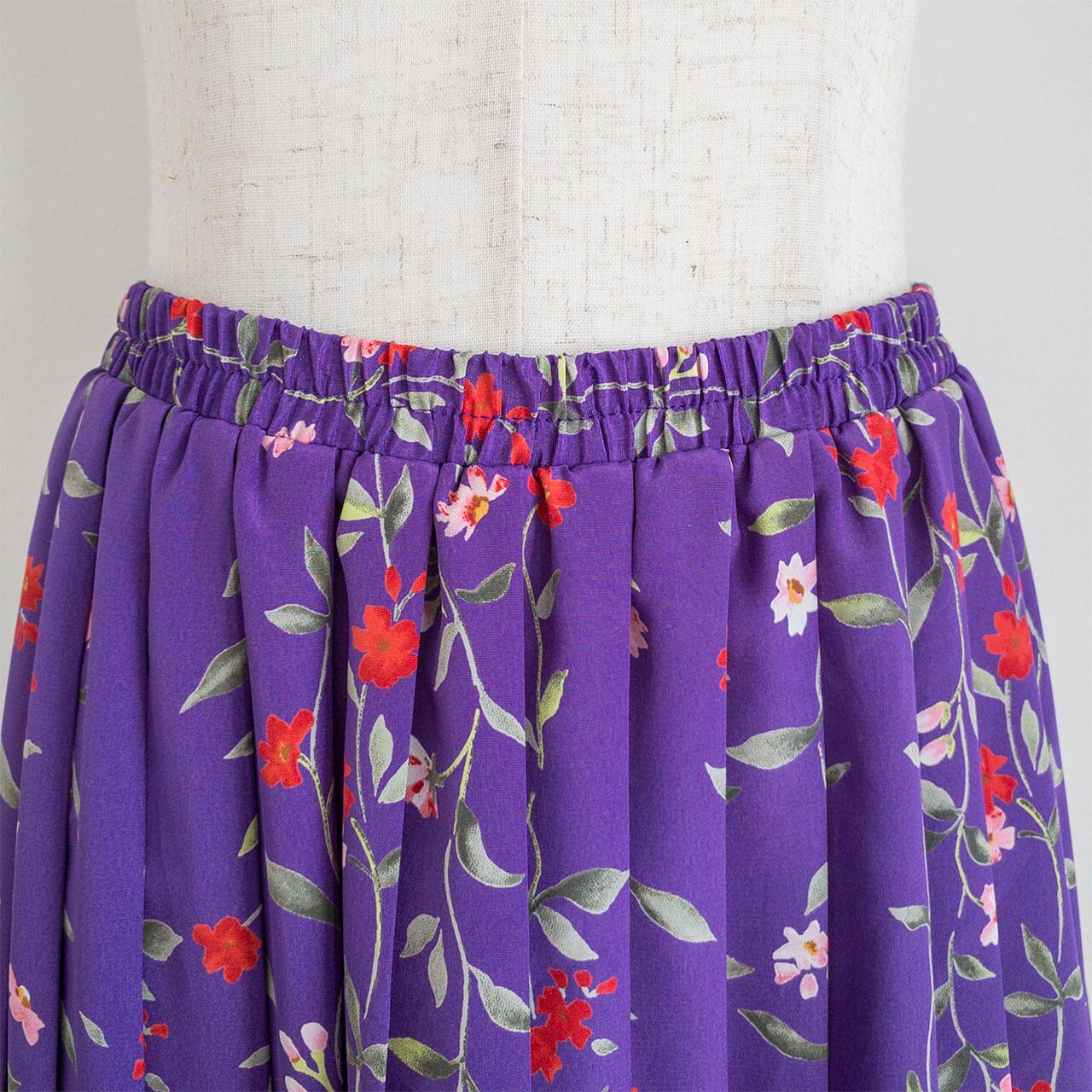 パープルフラワー プリーツスカート