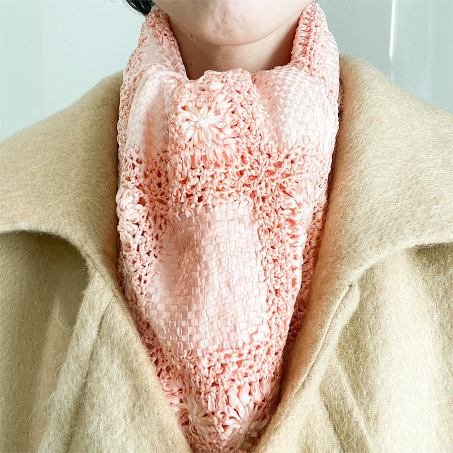 絹のリボンで編んだお花のストール
