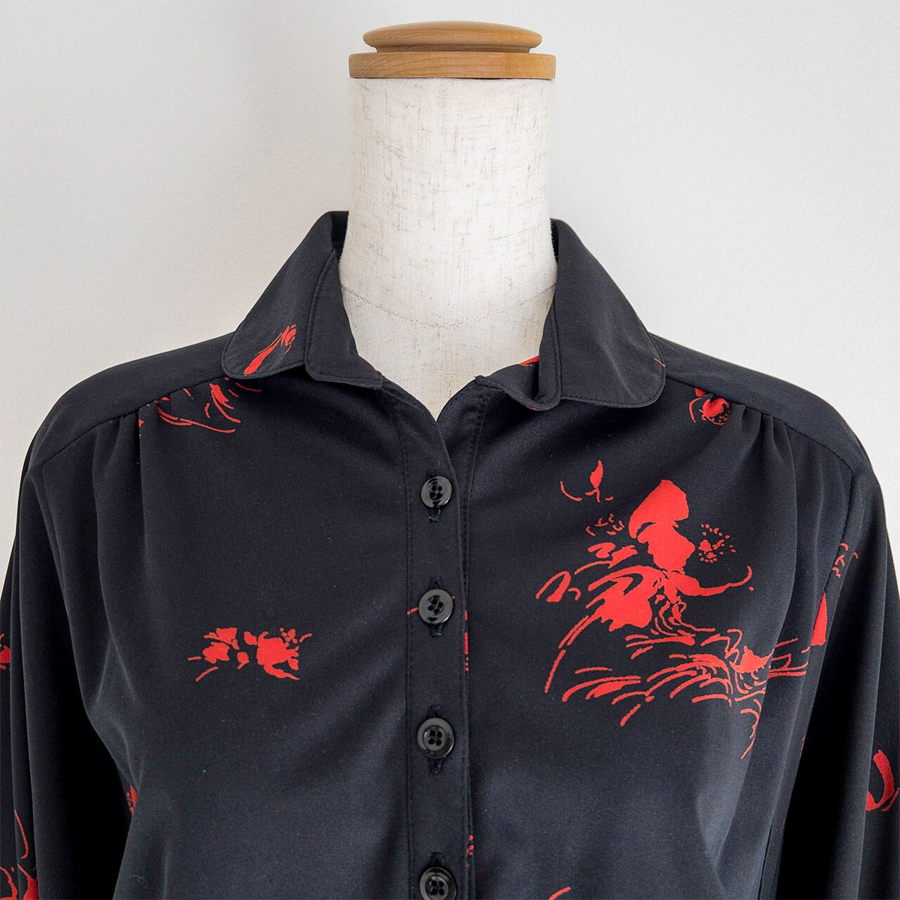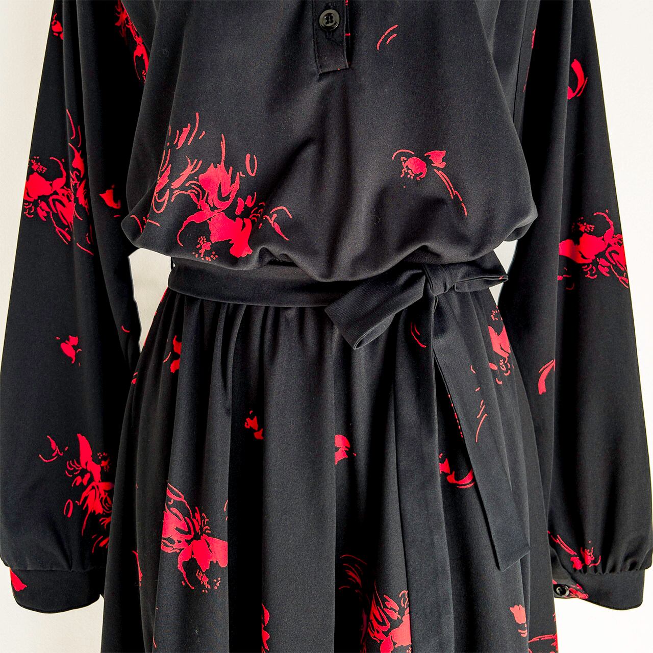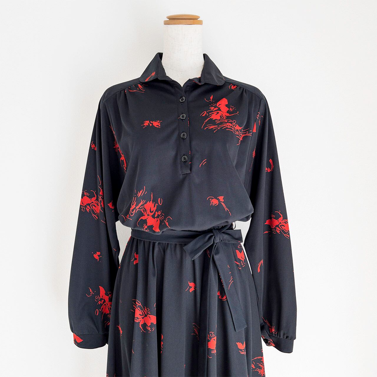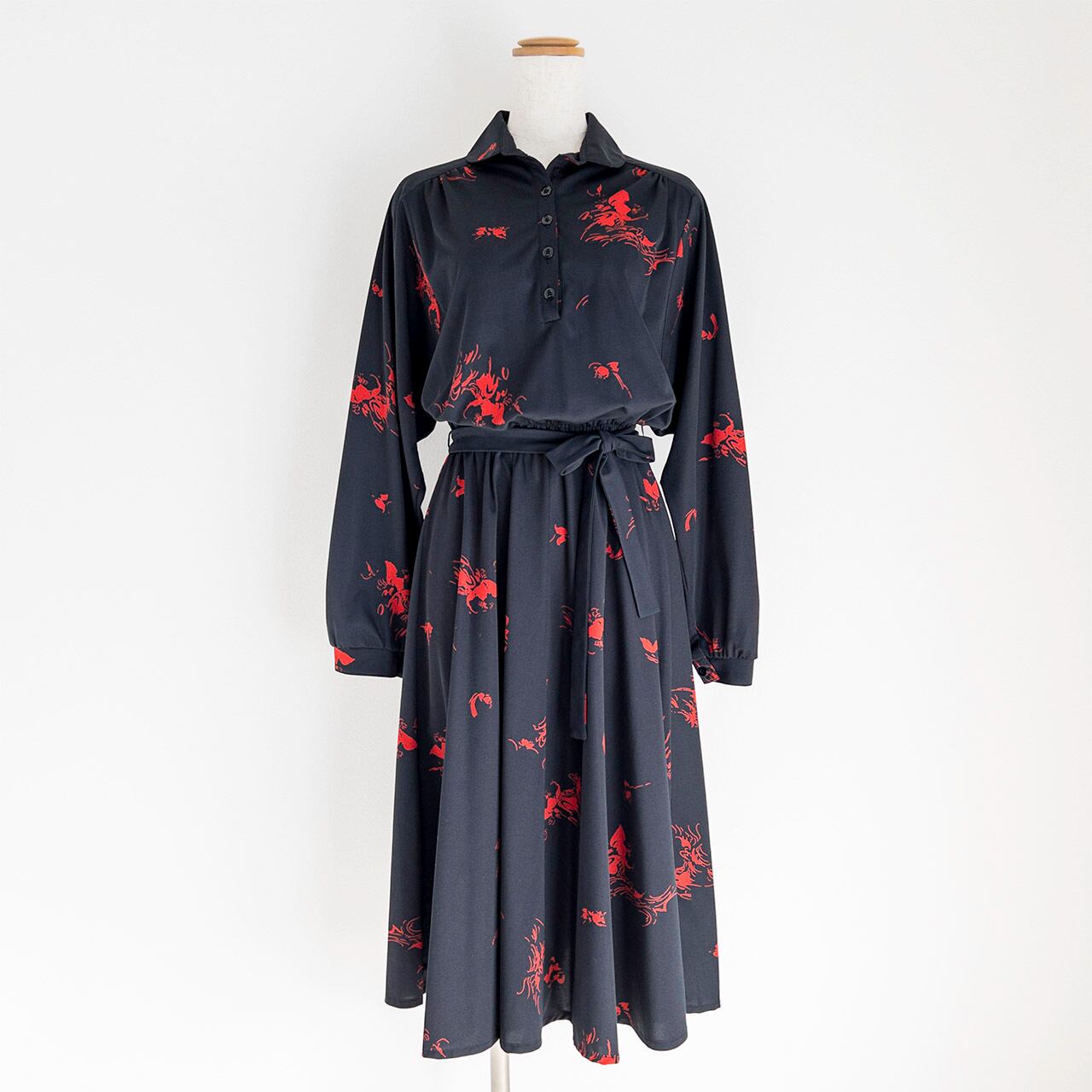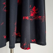 花火か彼岸花の様な朱色の模様が黒に映える、とてもカッコいいワンピースです。