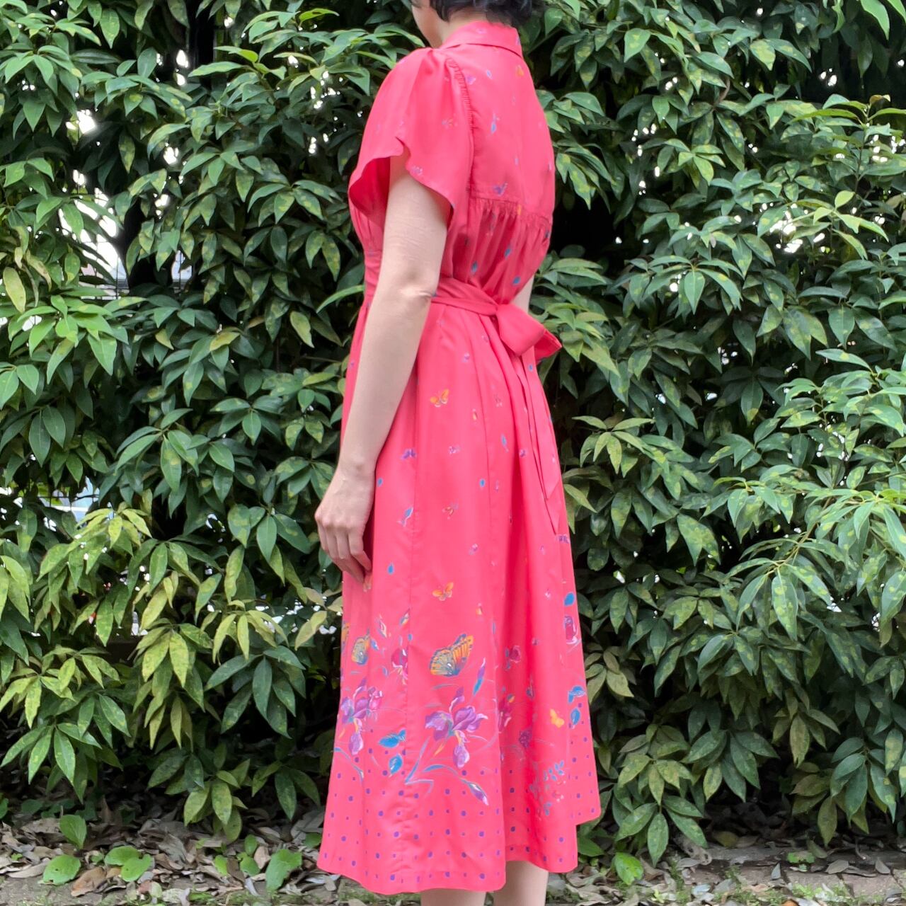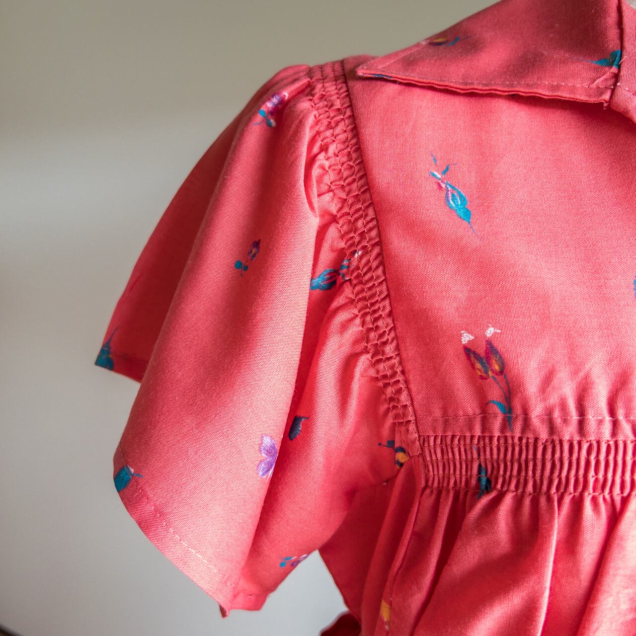 こちらのワンピースも、形はかわいいですけど、油彩風の絵柄や生地の色が古着ならではの趣きがあって、古着のワンピースを着るなら、こういうのが着たいと思います。