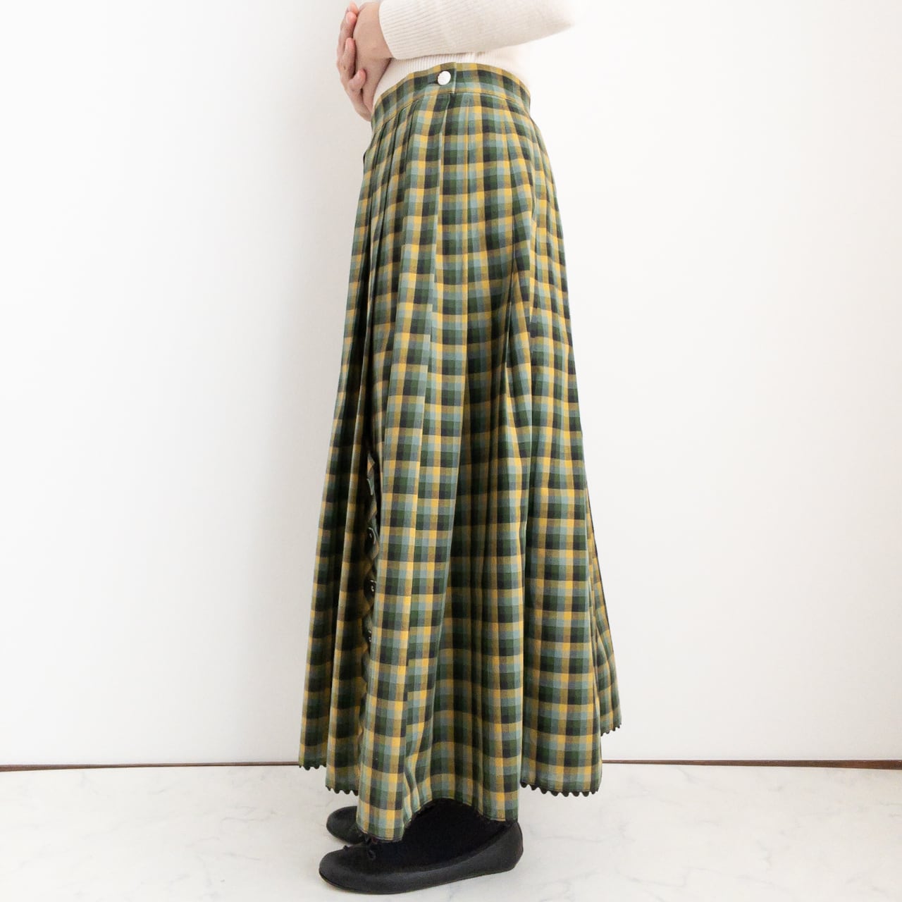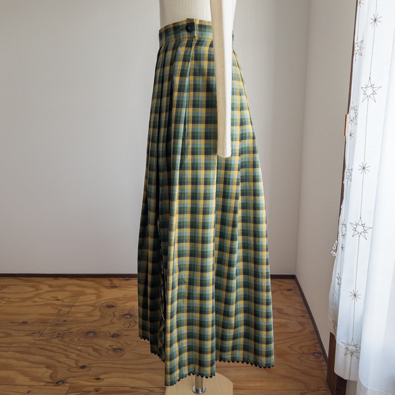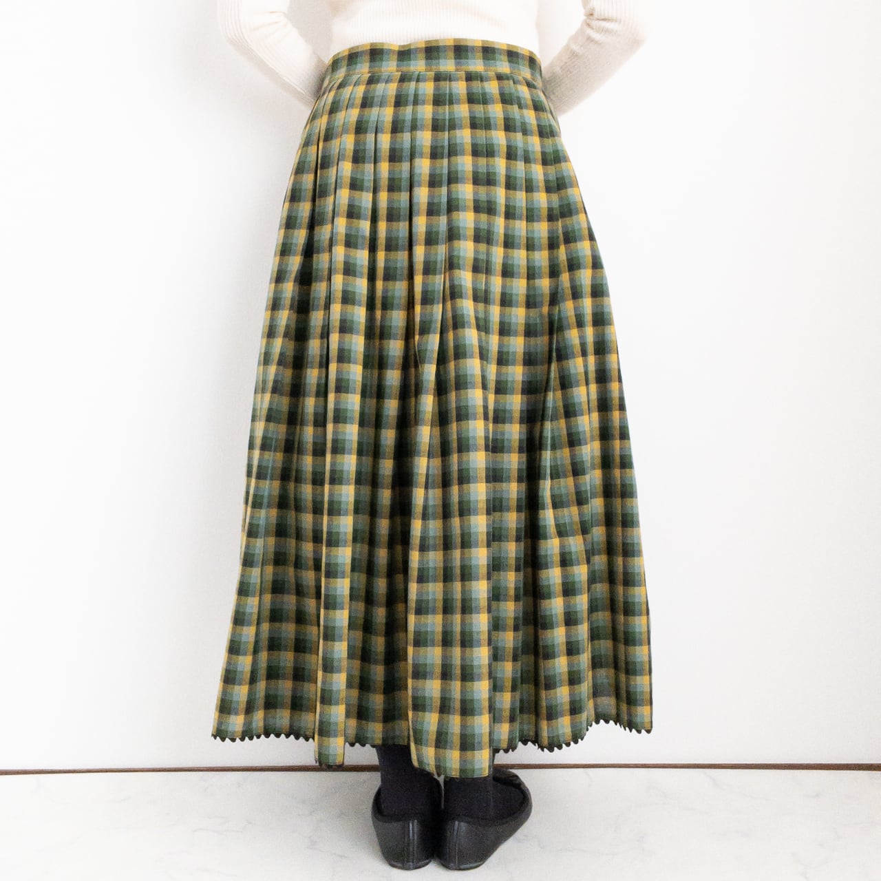 こちらのスカートのタータンチェックは中心の色が黒ですので、珍しい色合わせですけどコーデしやすいです。