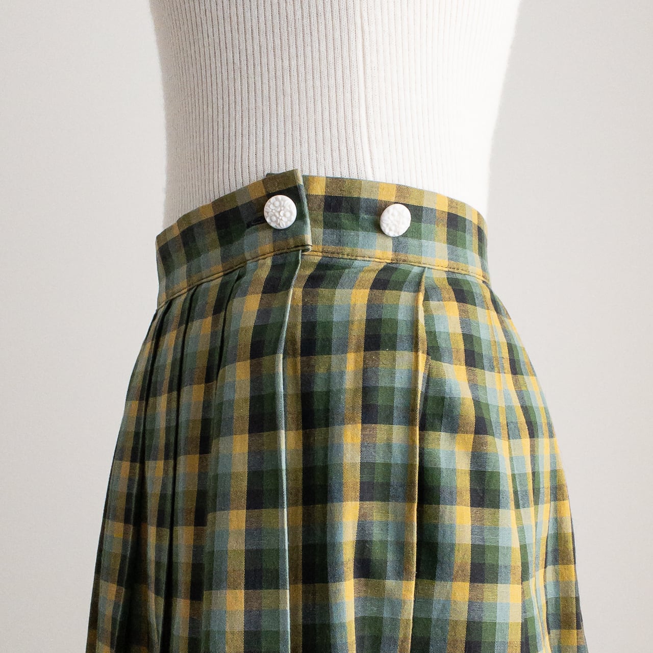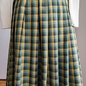 黒と黄土色に近い黄色、くすんだ水色、モスグリーンのタータンチェック柄。