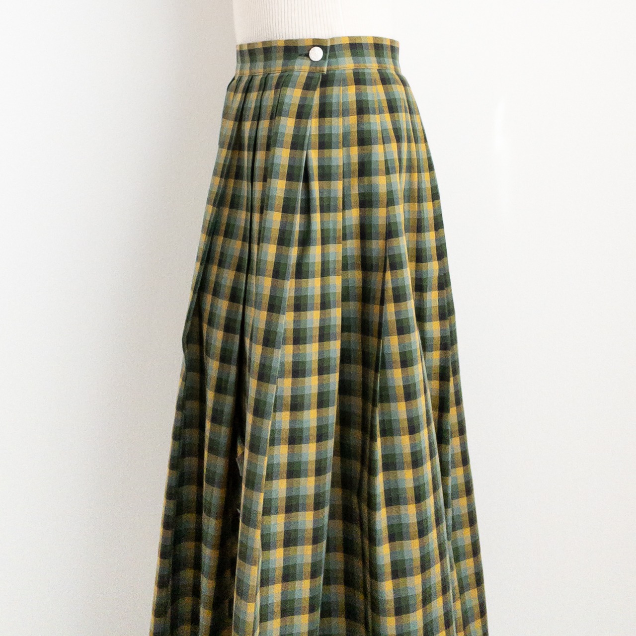 モスグリーン、くすんだ水色、ブラック、イエローのタータンチェック