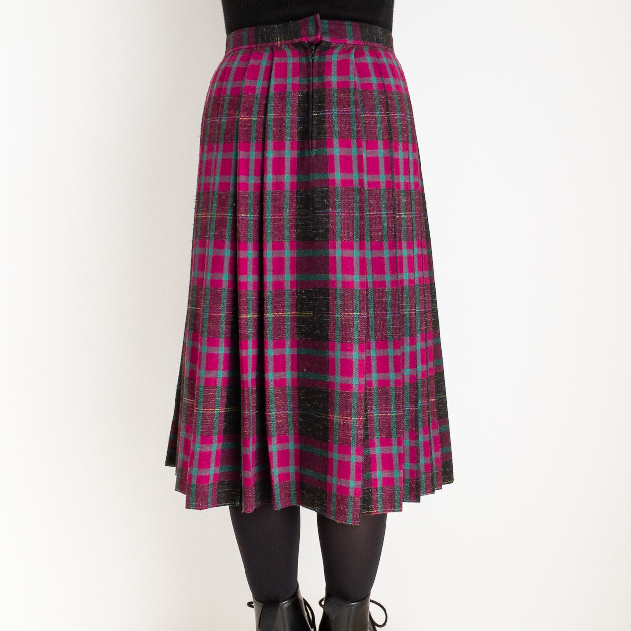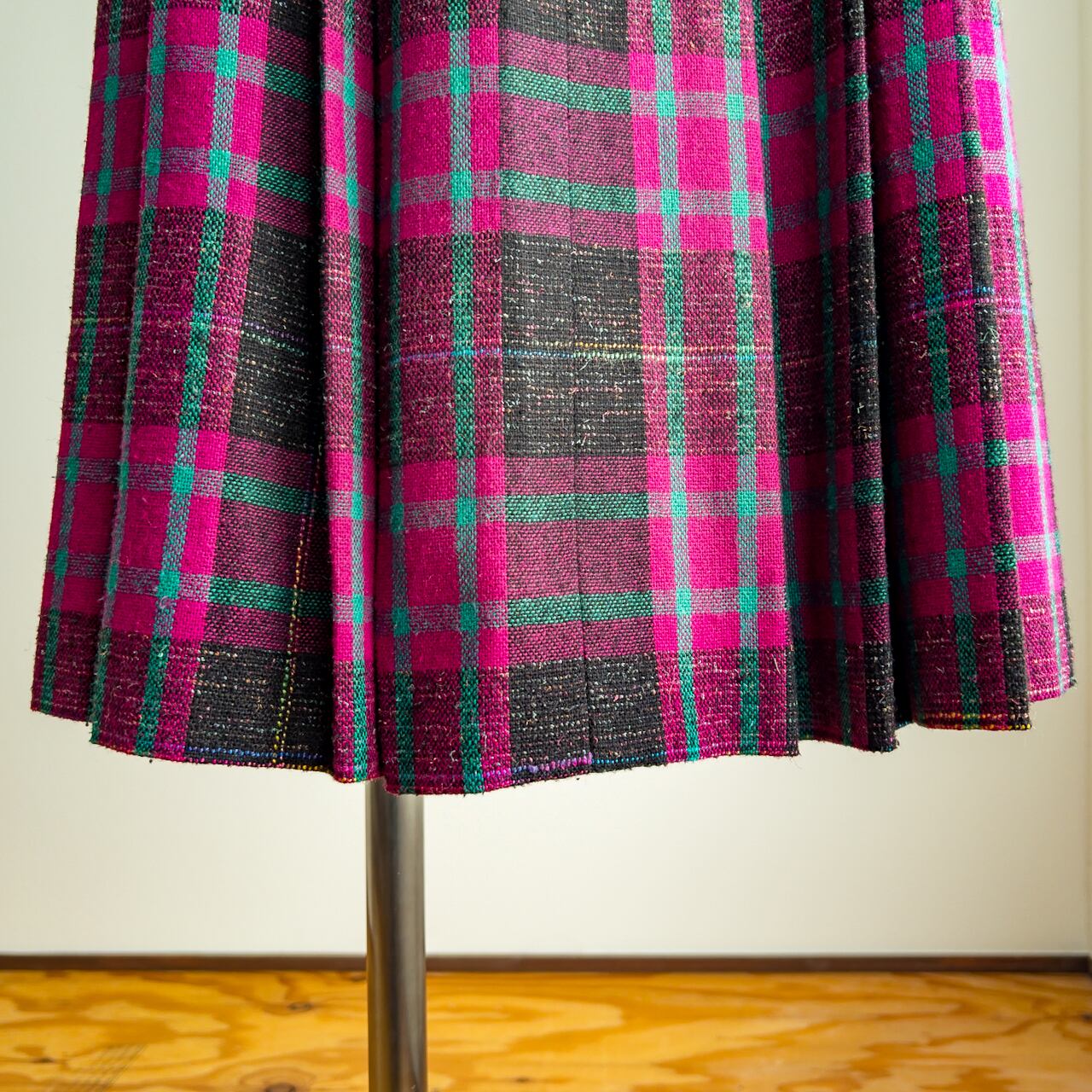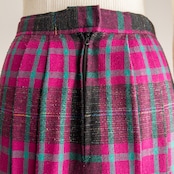 マゼンダピンク、エメラルドグリーン、ブラック、イエロー、ブルーのタータンチェック