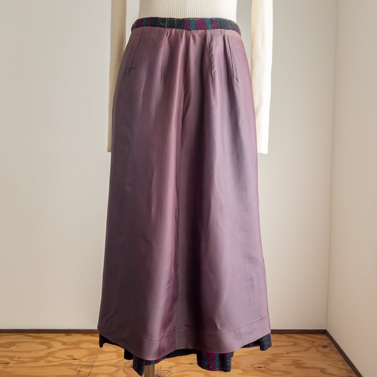 古着の裏地は、こちらのスカートのように表地の雰囲気とマッチしていたり、スカート自体を惹き立たせてくれたりと、裏地が見えた時のことを本当によく考えて付けられているものが多い印象です。