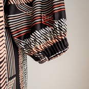 アポロチョコのような色使いの柄の生地にキラキラ光るボタンの、とってもかわいらしい服。