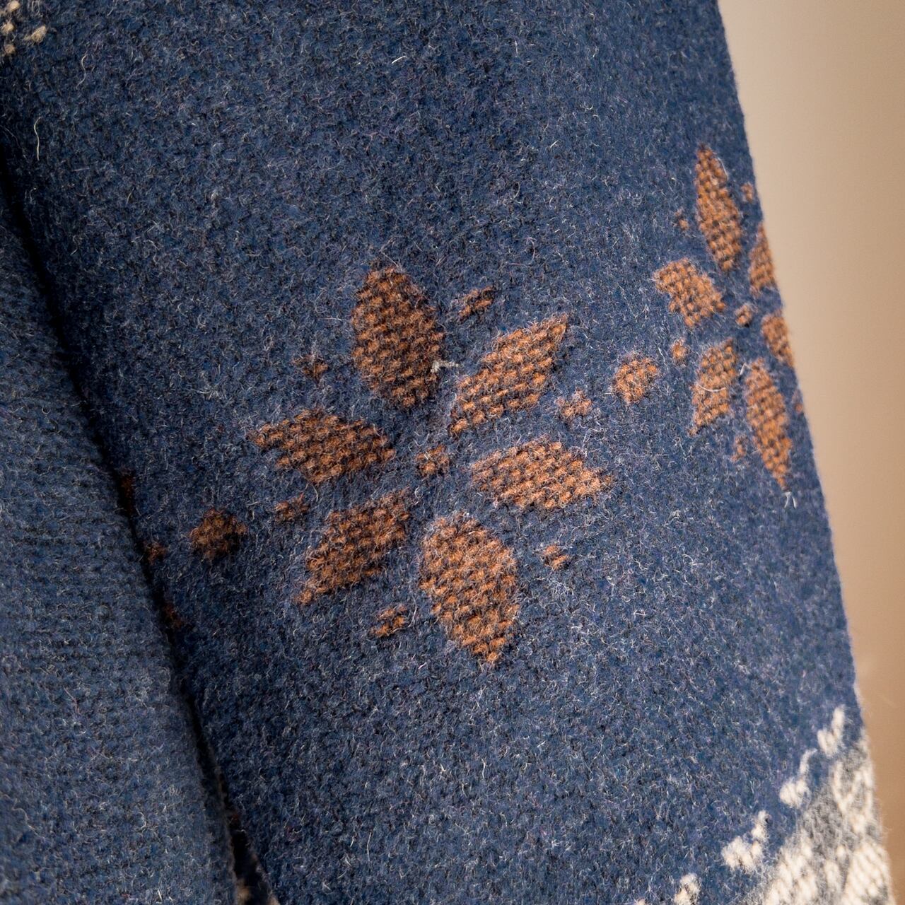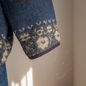 丸襟もとても可愛らしくて、襟と裾と袖口には京都のそばぼうろみたいなお花の模様が編まれています。