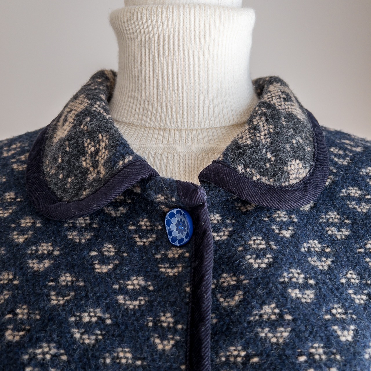 全体的に落ち着いた配色のこちらの服のワンポイントになった新しいボタンを見て服は「まるで冬の花が咲いたよう。」と、とても喜んでくれました。