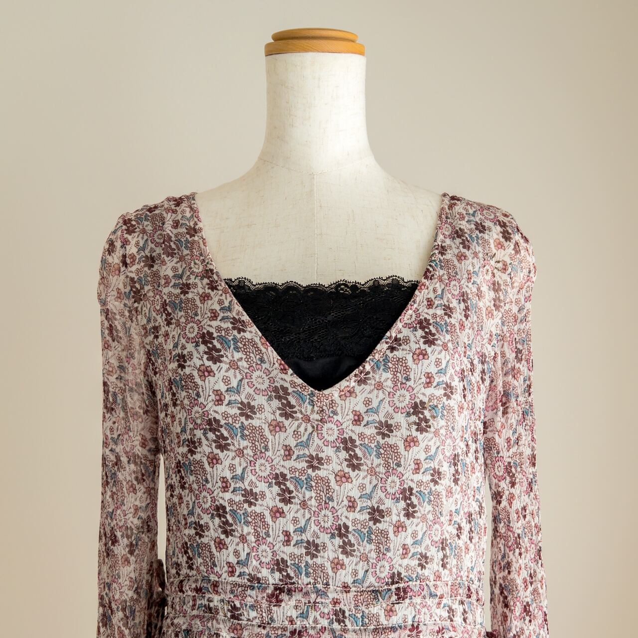 薄いピンク、ブルー、ブラウン、赤紫のお花柄