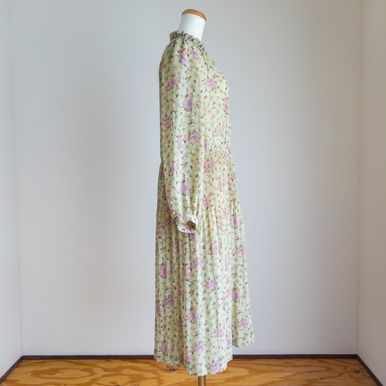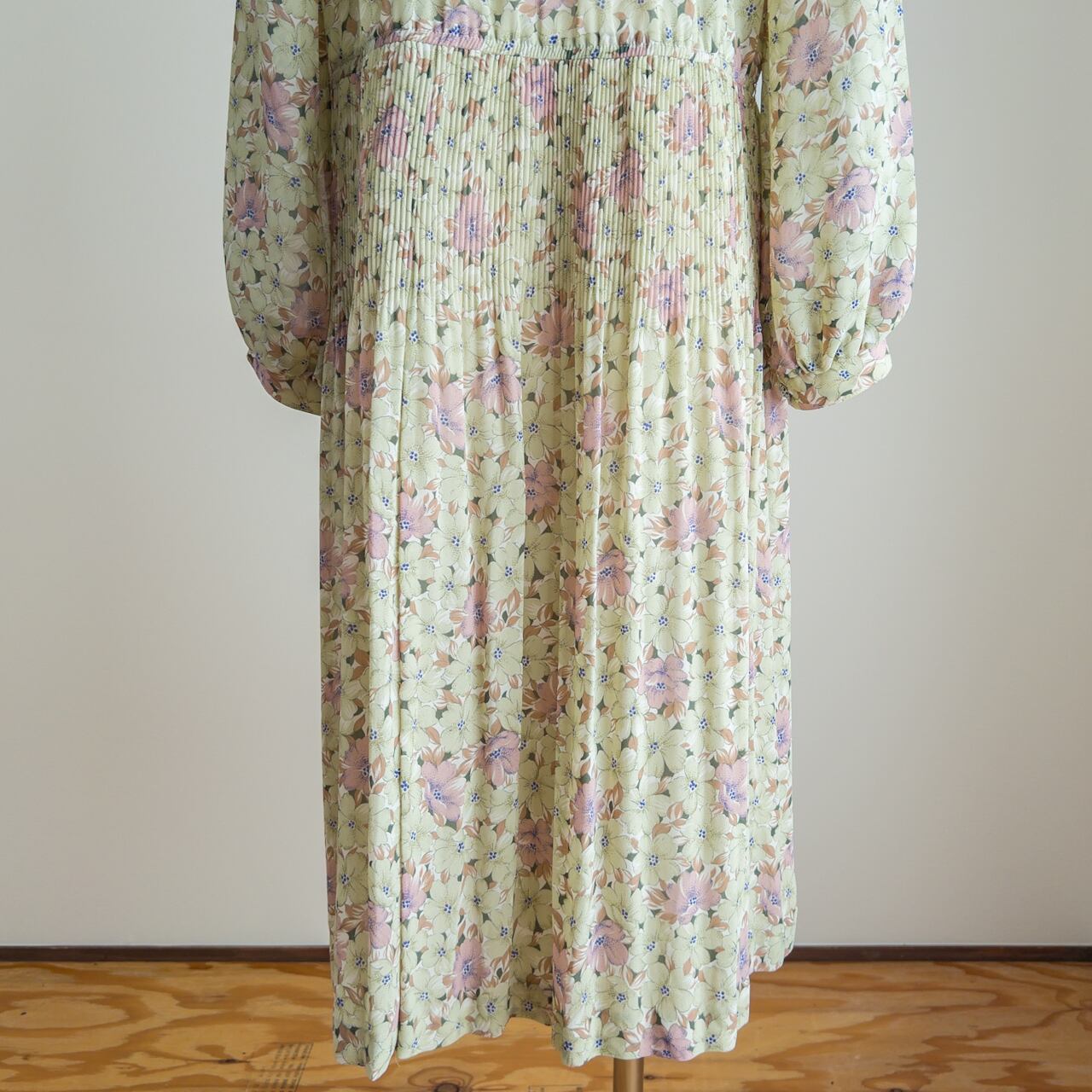 動くと、スカートがウエストの細かいプリーツからふわっと広がる様がとってもかわいらしい服です。