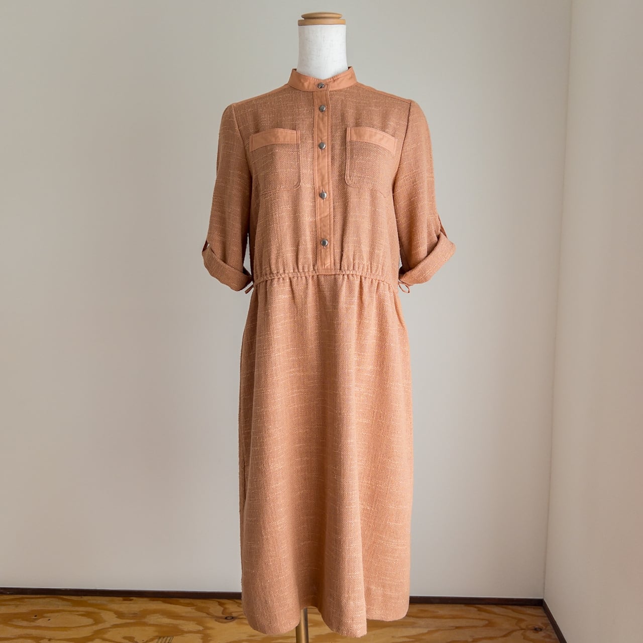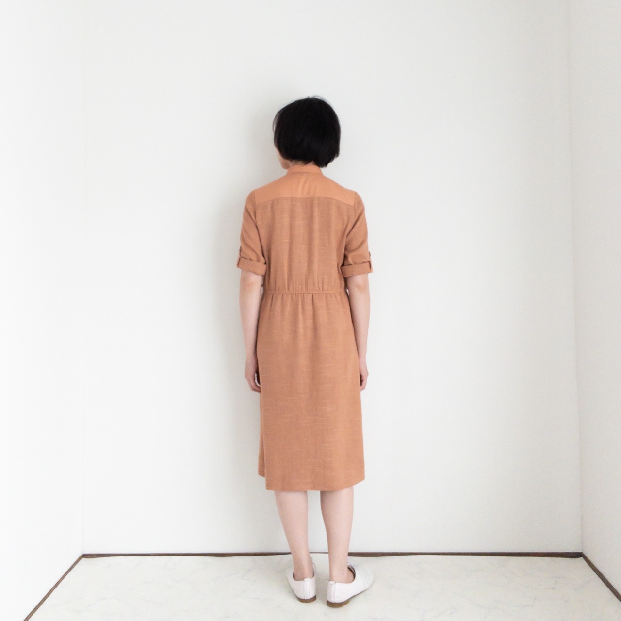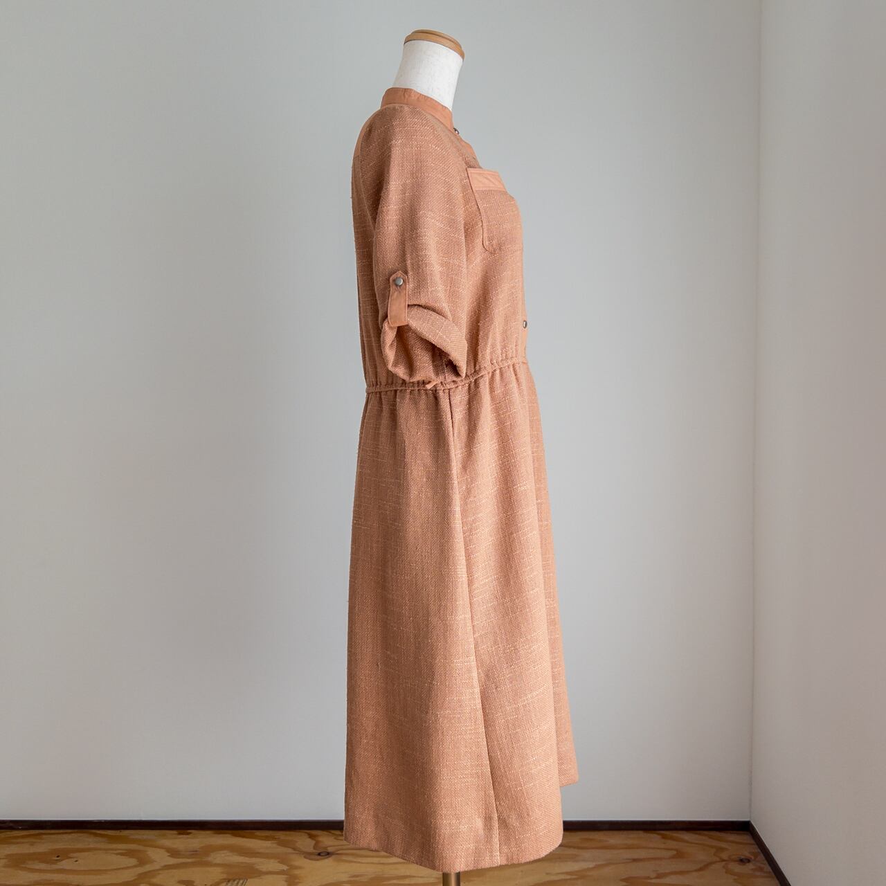 くすんだオレンジの色と、2ウェイの袖がかわいすぎるワンピースです。
