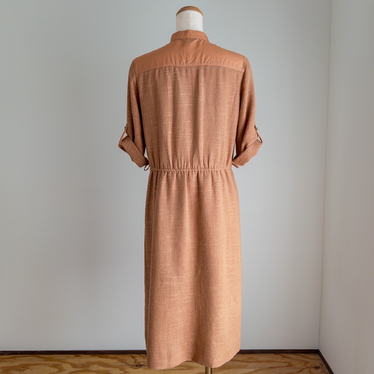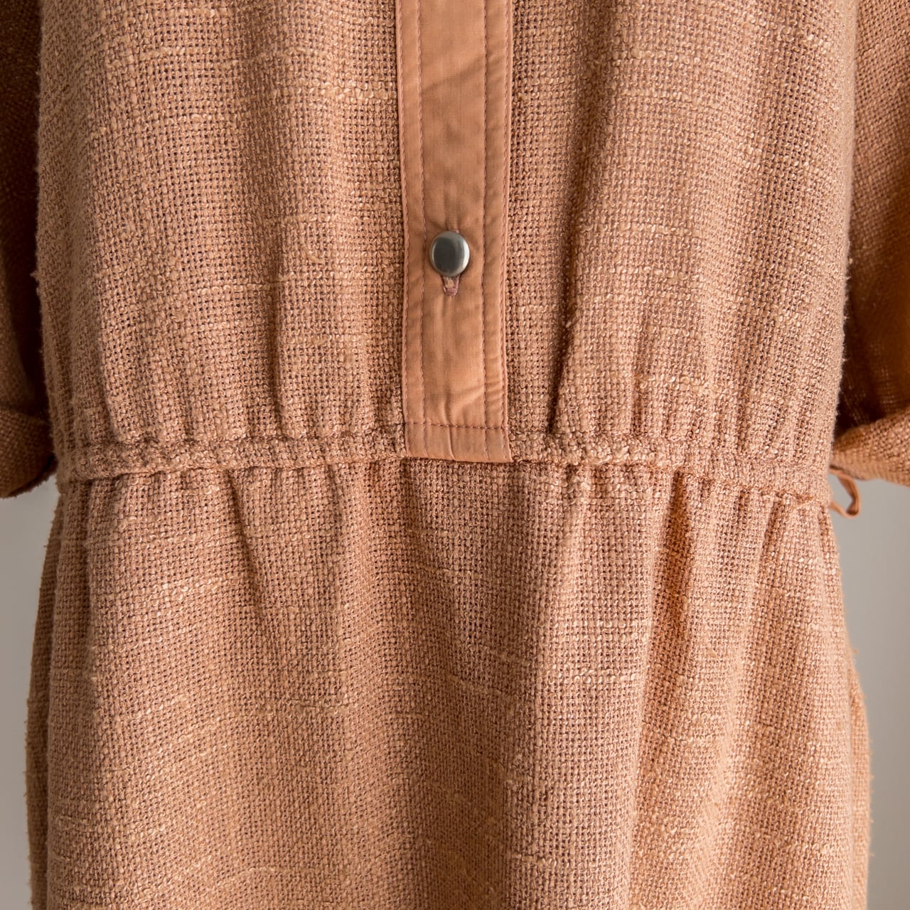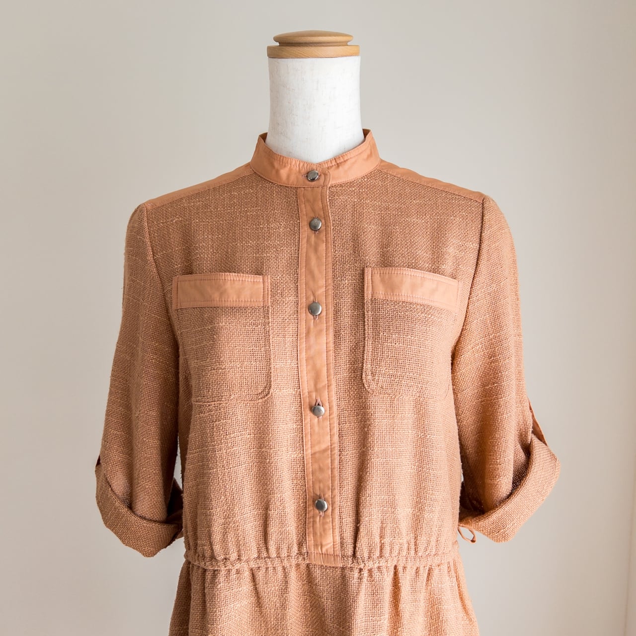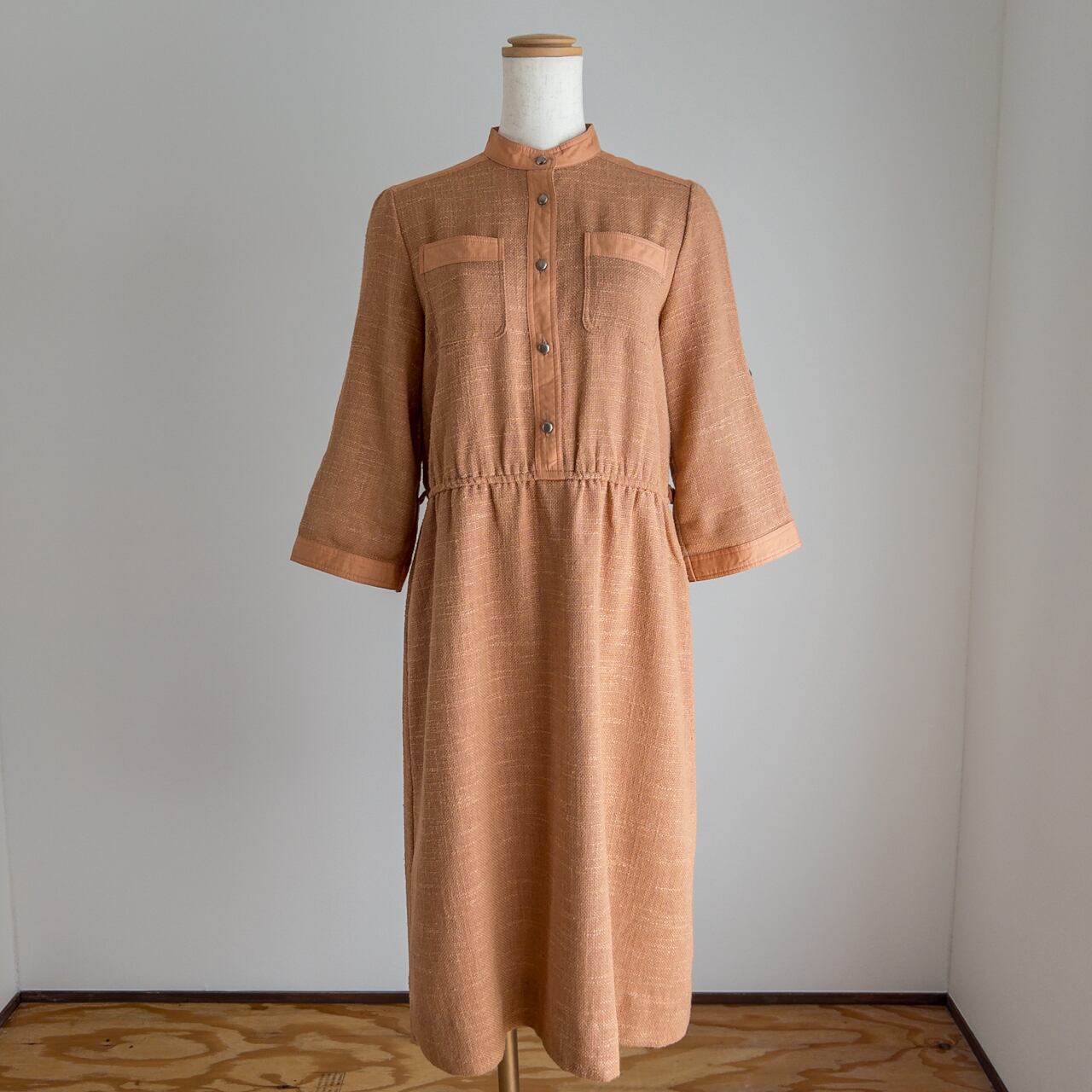くすんだオレンジの色と、2ウェイの袖がかわいすぎるワンピースです。