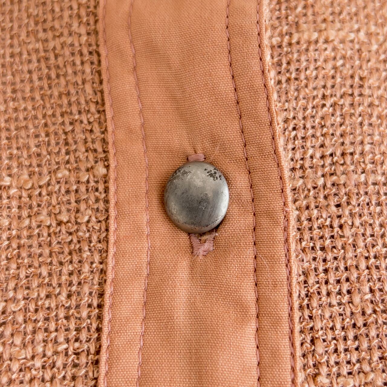 襟、肩とボタンの合わせ部分、ポケットの入り口と袖口は、ポリエステルと綿の別布で作られています。
