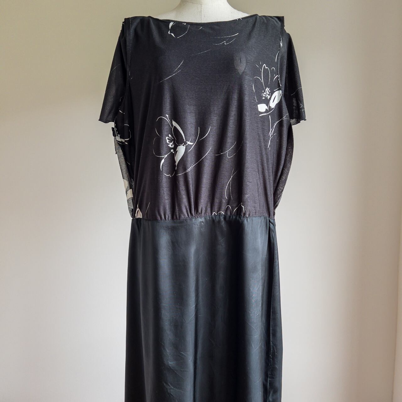 黒地の服ですけども、やわらかく軽やかに服が動く様がとても涼しげで、海辺なんかでこんな服を着てお散歩したら、さぞかしステキな美人に見えるだろうなぁと想像すると、心がときめきます。