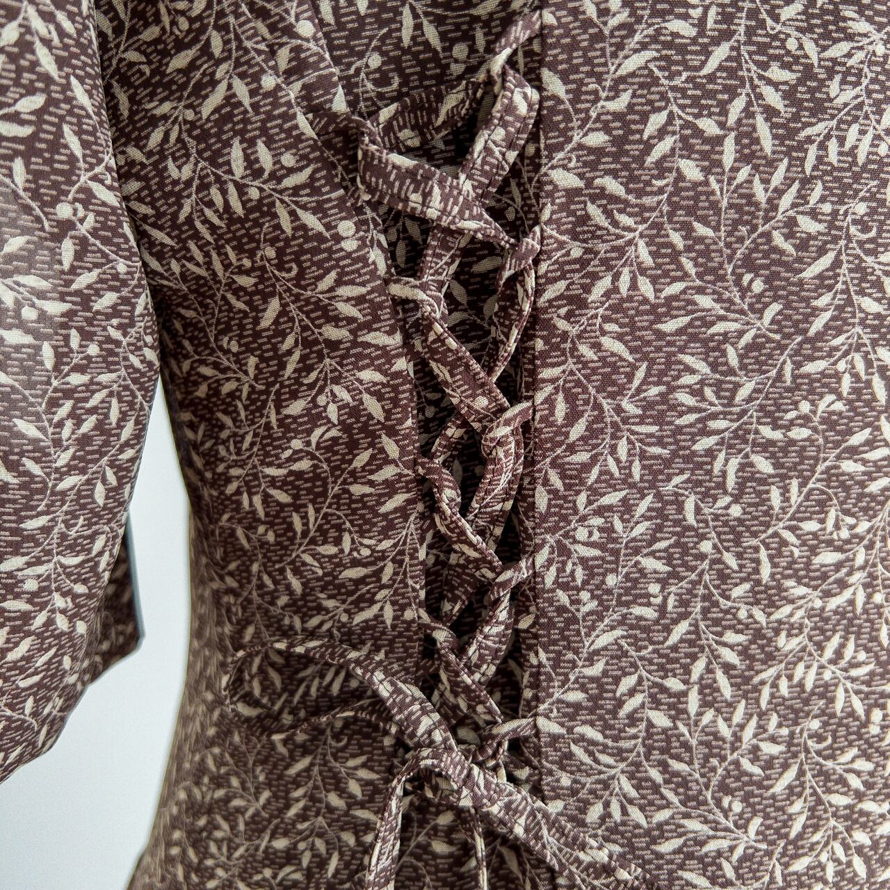 表地はサラッとした涼しげな織りの生地で、濃いめのブラウンの地に、ベージュの小さな枝葉が描かれています。