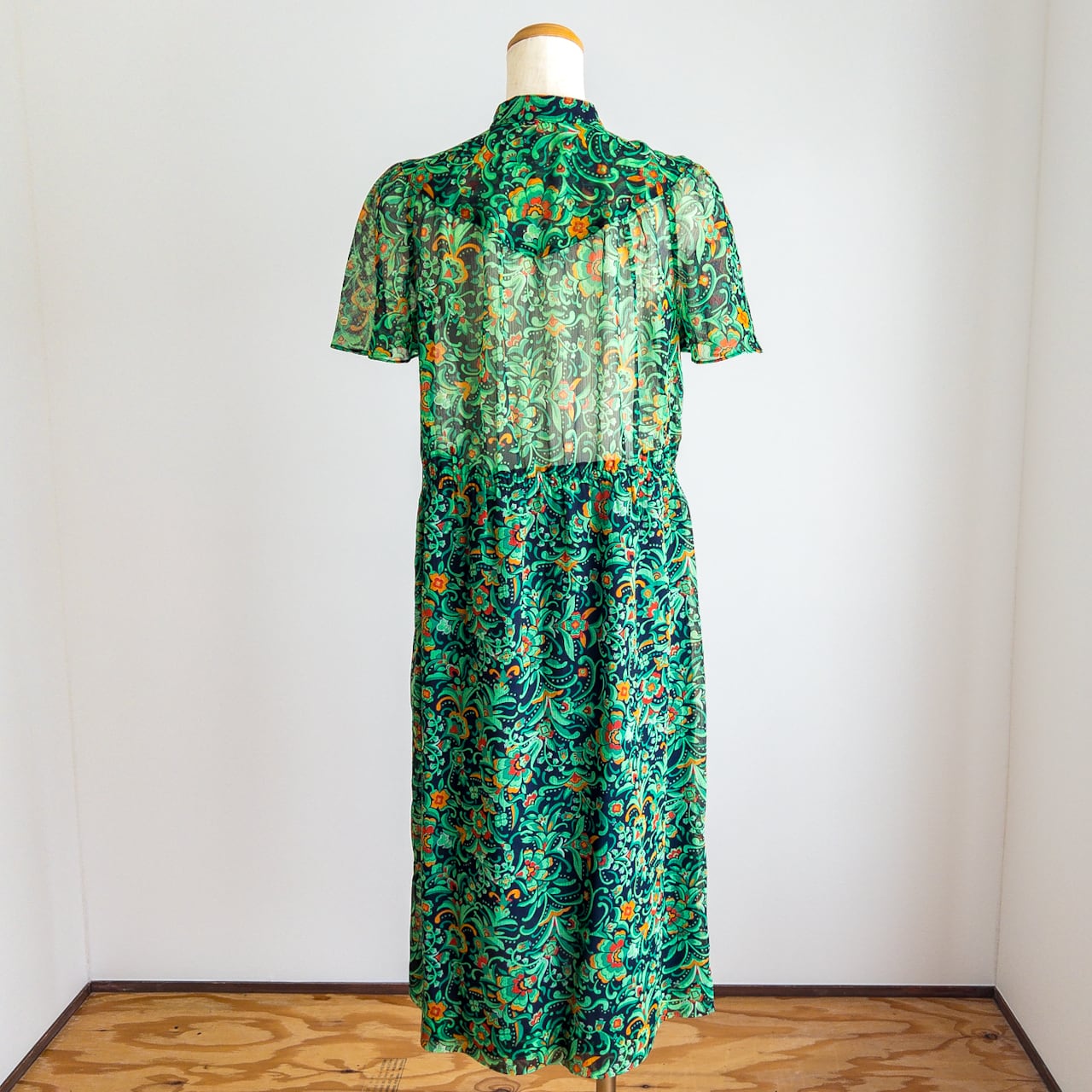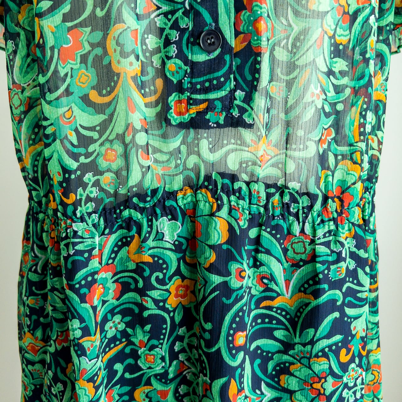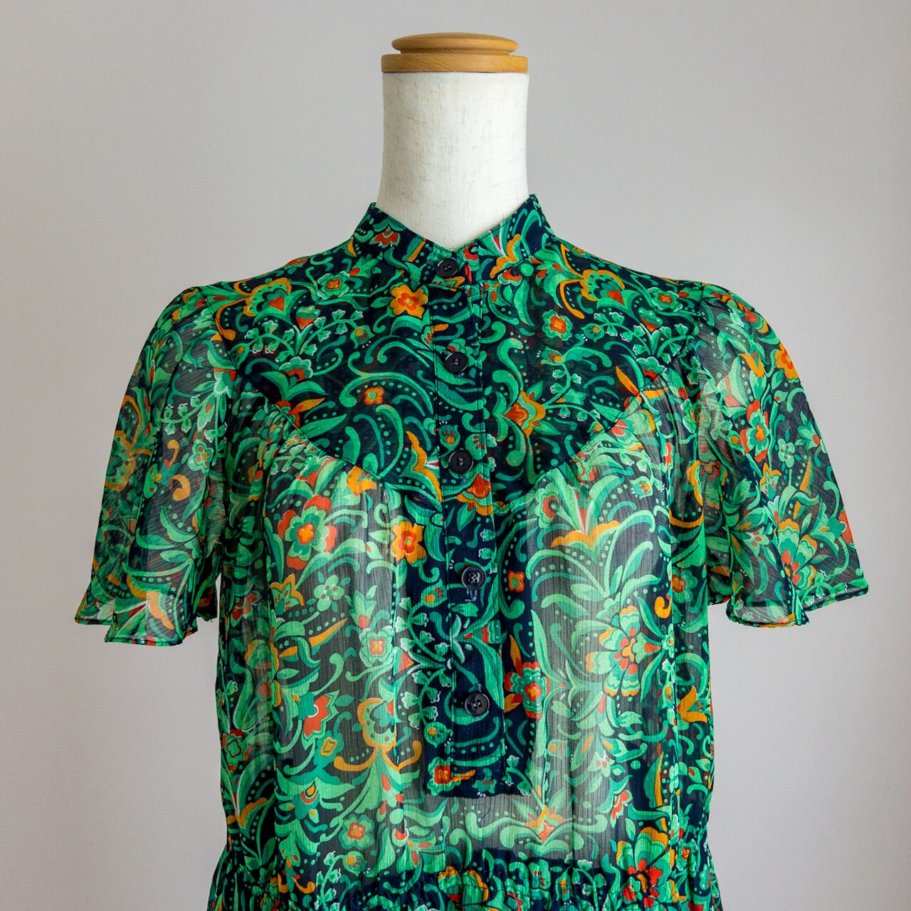 一見東洋風の柄と合わせて、襟はスタンドカラーになっています。