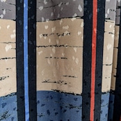 柄はモカとベージュ、ネイビーのくすみカラーが横で、ブラック、朱色、水色が縦の、とってもかわいい色合わせのチェック柄です。