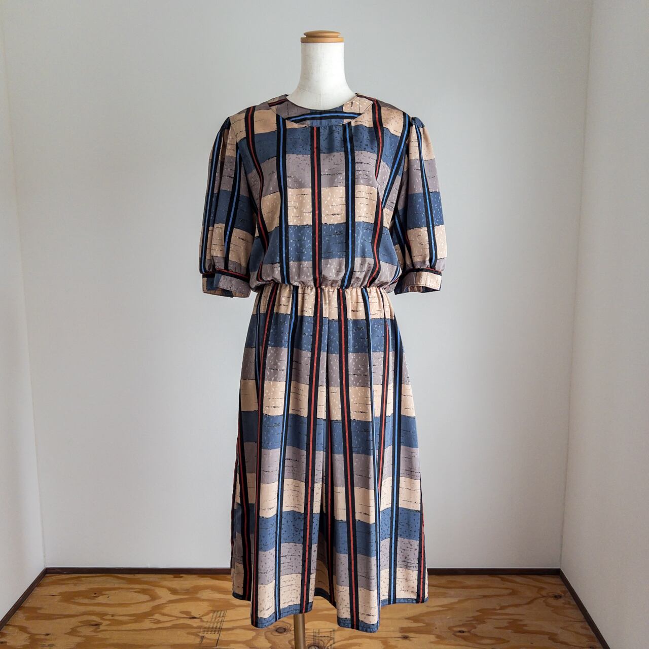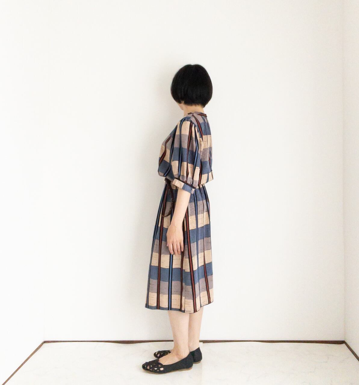 日本製の昔の服とはまた違う雰囲気と、チェックと豹柄の組み合わせがすごくお洒落です。