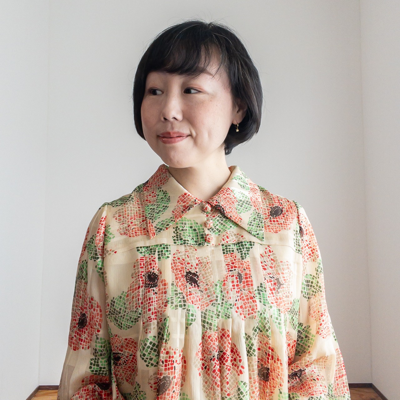 襟の立ち上がりが、ワンピースのかわいらしさに少し大人っぽさをプラスしています。
