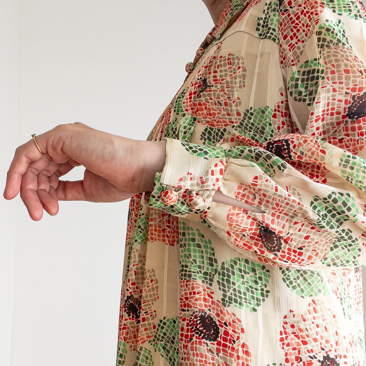 袖口の共布で作られたくるみボタンをかける輪も、共布でとっても綺麗に作られています。