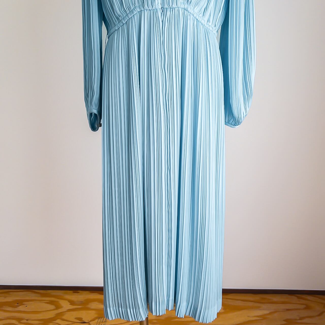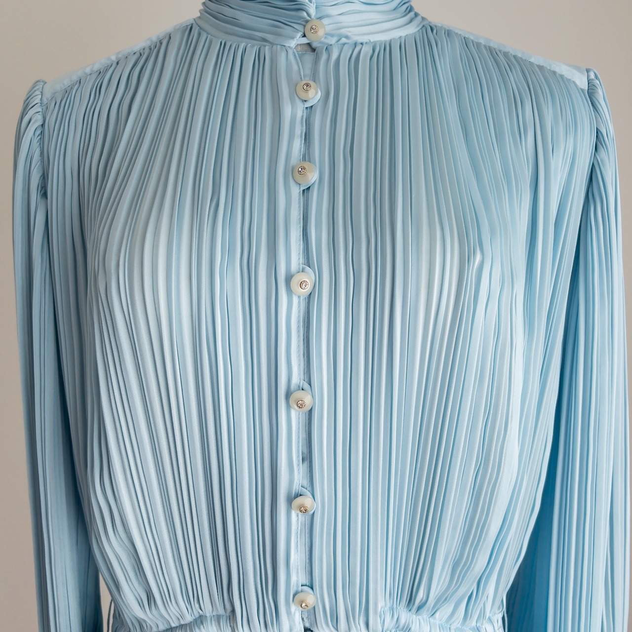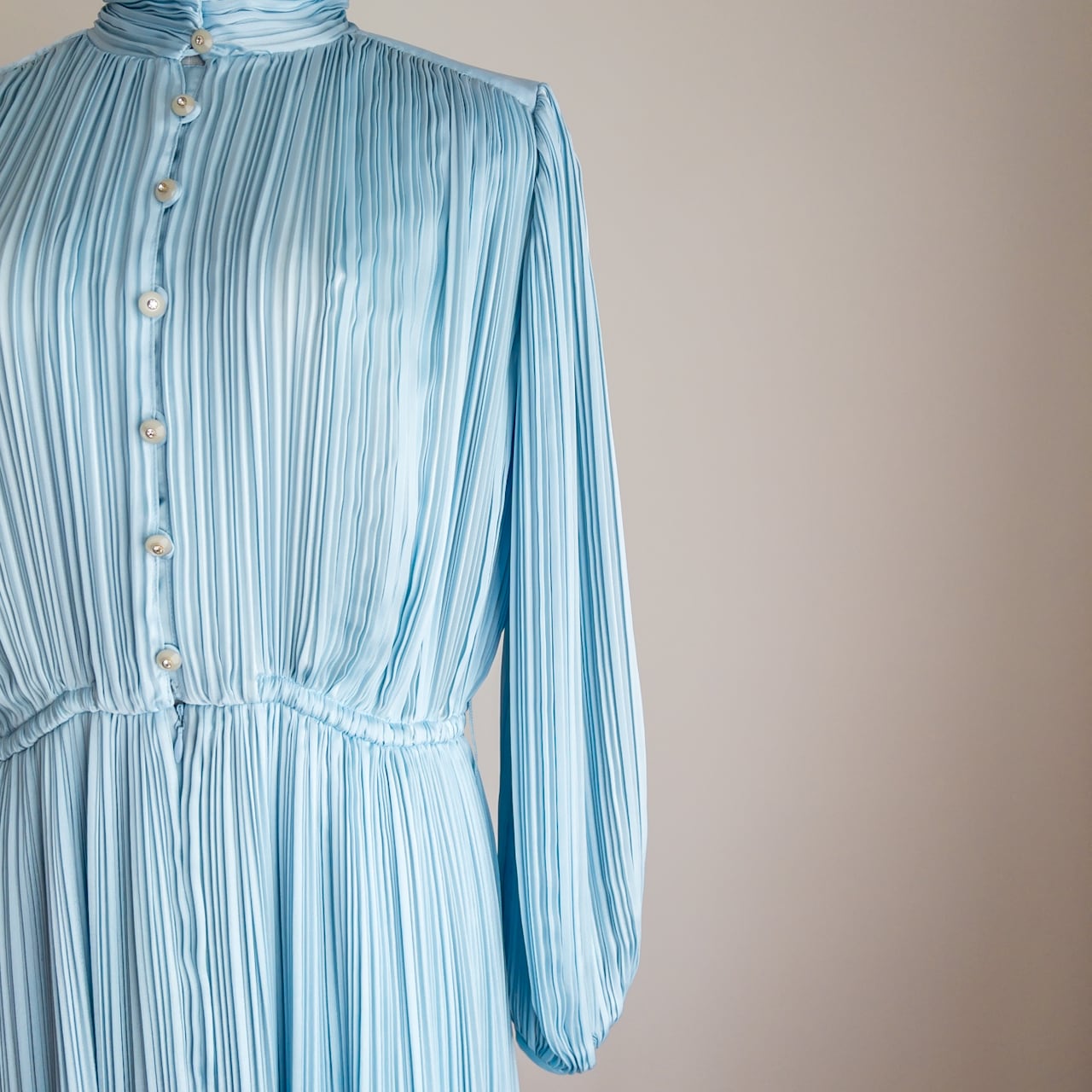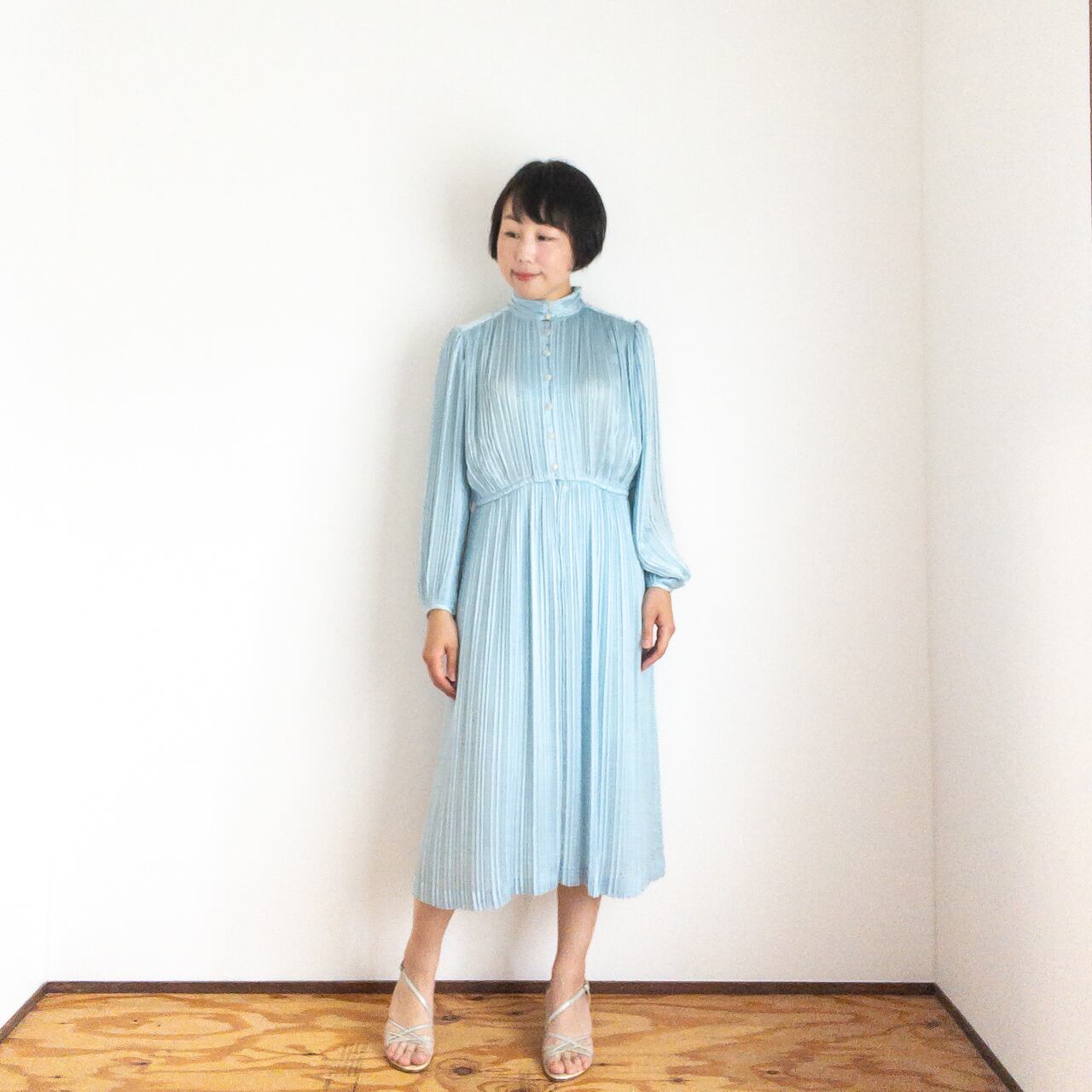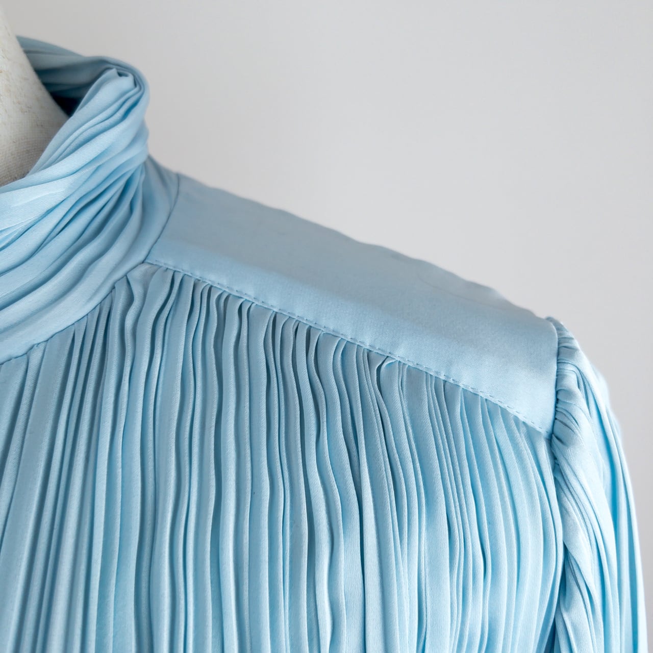 袖にもプリーツの生地が使われていて動きが綺麗なので、着ていてとってもエレガントな気持ちになります。